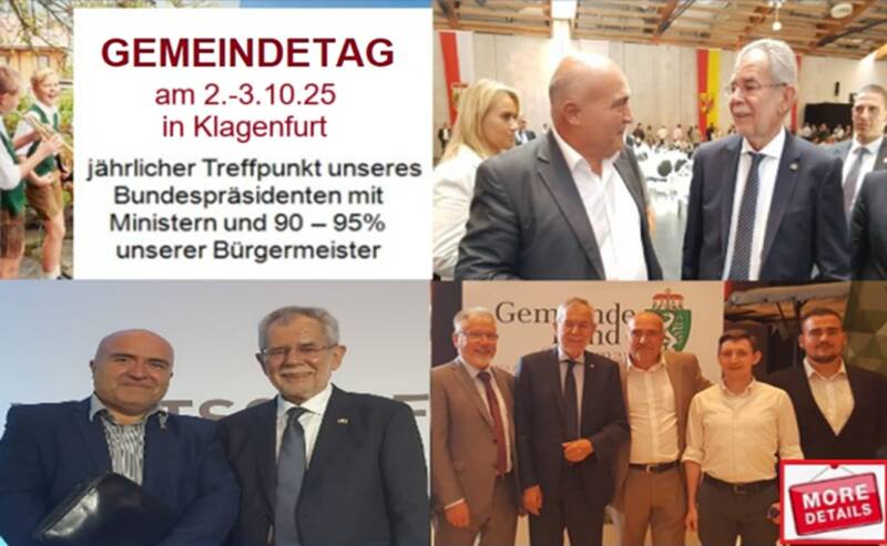 Der "GEMEINDETAG24" am 18.-19. September in Oberwart (war der jährliche Event mit unserem Bundespräsidenten, mit Ministern/innen, Bürgermeistern/innen, Amtsleitern/innen und vielen weiteren int. Entscheidungsträgern/innen) bietet die direkte Mõglichkeit - den nationalen u. internationalen Entscheidungsträgern - seine Lõsungen zu präsentieren.