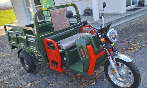 Das e-Lastenfahrrad ist mit einer 72V/45Ah-Batterie ausgestattet, welche an einer normalen 230V-Steckdose aufgeladen werden kann und ist mit einem 600-W-Motor ausgestattet. Der Motor ist direkt am Differential und Getriebe an der Hinterachse montiert.