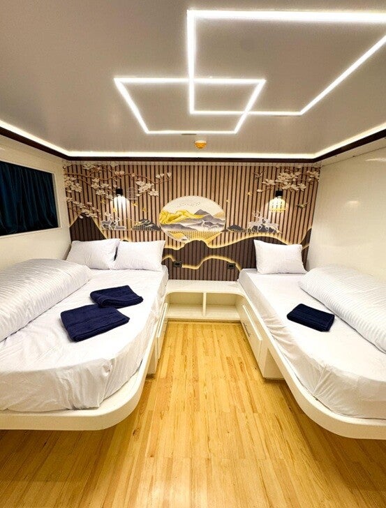 *3 decks - *8 rooms with 2 beds - *2 Royal Suite - *Restaurant + Kitchen - *All navigation devices - *2 Daewoo engines 1000 horsepower - *2 generators 100 kilowatts - *2 desalination plants 8 tons - *Central air conditioning