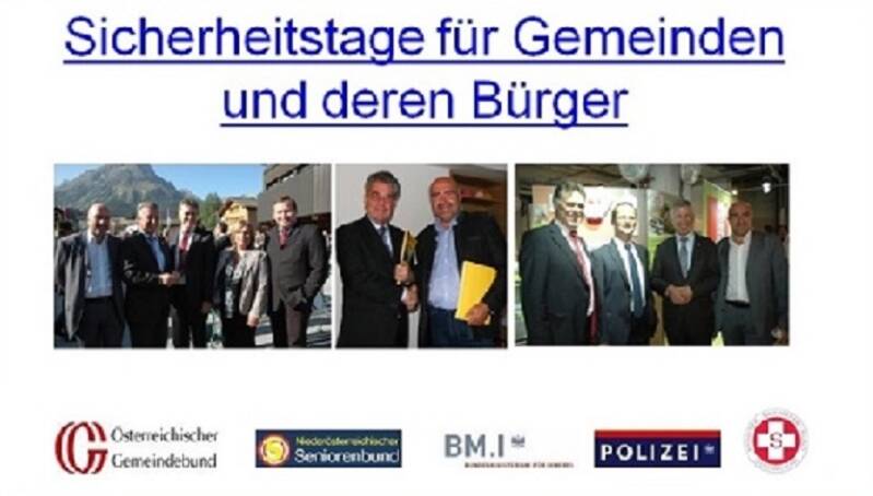Seit 2009 beraten wir die österreichischen Gemeinden und deren Bürger gemeinsam mit dem österr. Gemeindebund, dem Bundesministerium für Inneres, den Landesförderungsstellen, dem Samariterbund und dem Seniorenbund. Fragen rund um das Thema Sicherheit werden beantwortet - die Palette reicht dabei von speziellen Sicherheitslösungen über Förderungen, Finanzierungen bis hin zu den Funktionen, die beim Kauf einer Alarmanlage zu beachten sind.